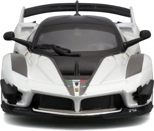 Detailně zpracovaný model vozu Ferrari FXX-K EVO 2017 přináší realistické proporce, ostré linie karoserie a závodní prvky jako velké zadní křídlo, difuzor a přední splittery. Bílo-černé provedení s číslem 70 podtrhuje autentický vzhled okruhového speciálu.
