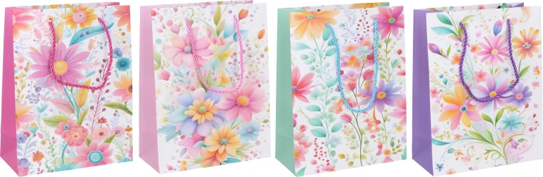 Tato celoroční dárková taška ve velikosti L je ideální volbou pro přenos dárků různého typu. Vyberte si z 4 různých designů, které uspokojí každou estetiku a událost. Taška je dostatečně prostorná a umožňuje snadnou manipulaci s dárky všech velikostí.