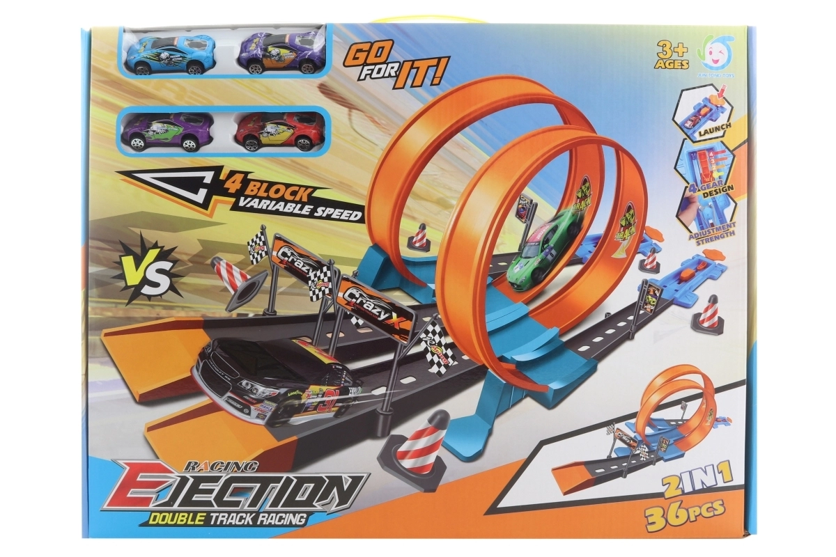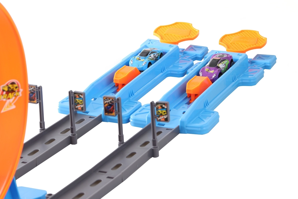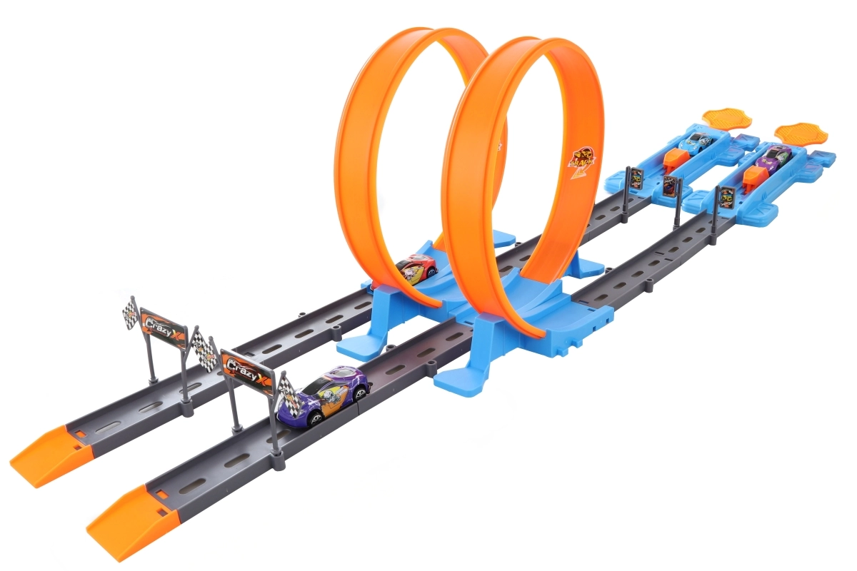 Tato dětská závodní dráha přináší nekonečnou porci zábavy a soutěžení. Dvojitá trať s paralelními jízdními pruhy umožňuje přímé závody dvou autíček současně, zatímco nastavitelné 4 stupně výstřelu zajistí vždy tu správnou dávku rychlosti. Díky chytře navrženým smyčkám a stabilním podpěrám se autíčka řítí po trati a vytvářejí efektní průjezdy.