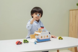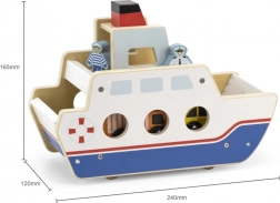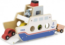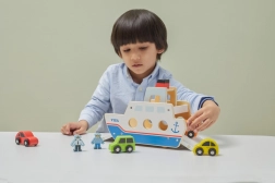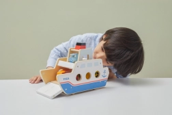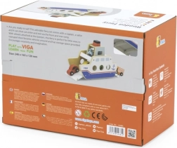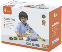 Tento kvalitní dřevěný trajekt potěší všechny malé milovníky vozidel a lodí. Loď jezdí na kolečkách, takže ji lze snadno přesouvat, a má vyklápěcí rampy z obou stran, aby autíčka mohla pohodlně najíždět i sjíždět. Robustní zpracování a hladké hrany jsou ideální pro děti od 18 měsíců.