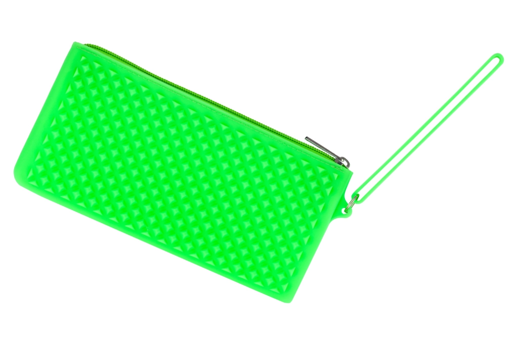 Stylové a praktické silikonové pouzdro od značky BAAGL v neonově zelené barvě je ideálním řešením pro uložení psacích potřeb a dalších drobností.