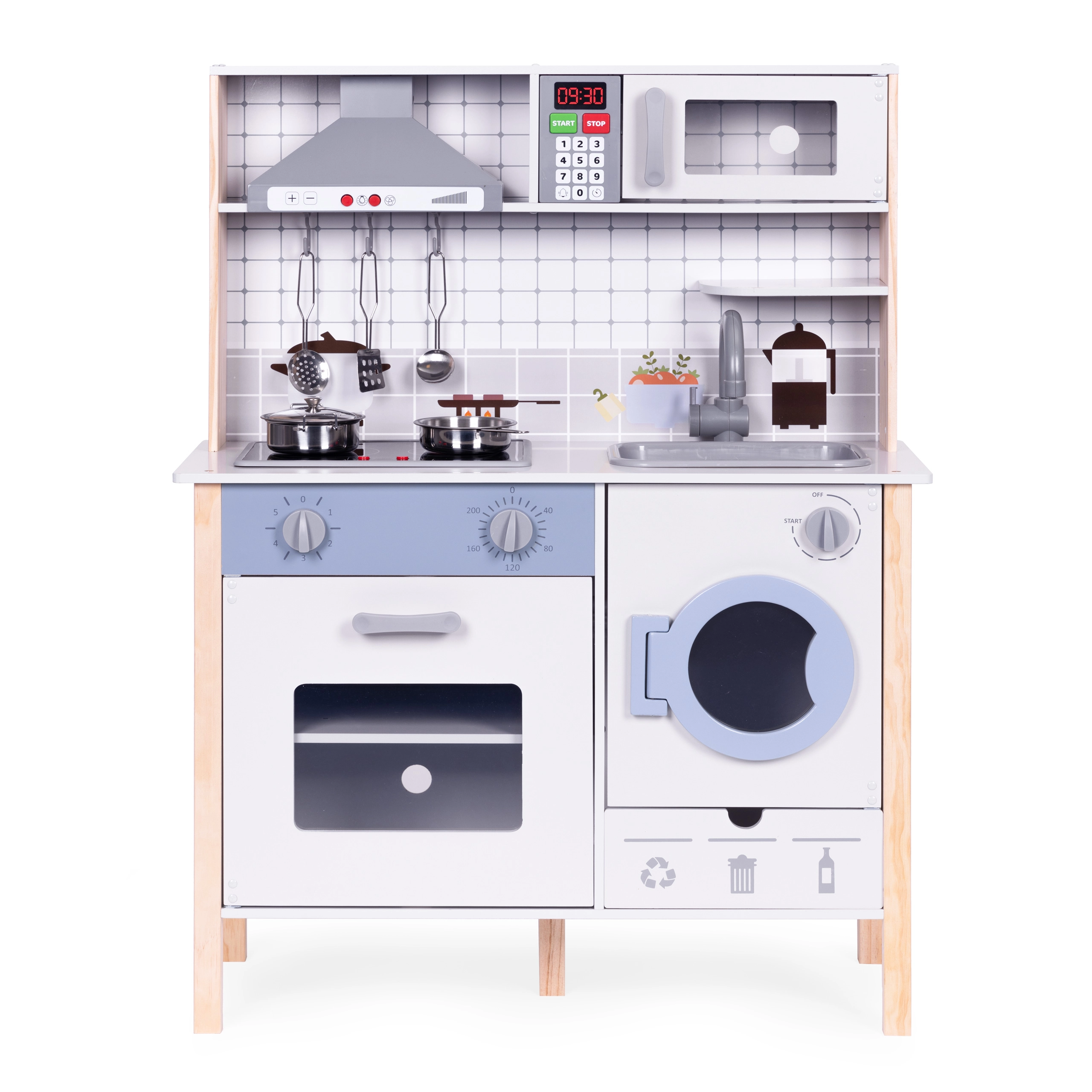 Objevte radost z vaření s velkou dřevěnou kuchyňkou ECOTOYS, která nabízí realistické funkce jako troubu, mikrovlnku, pračku, dřez a plotýnky s LED. Otočné knoflíky s klikáním, světelná a zvuková sada (digestoř, mikrovlnka, vaření) a otevírací dvířka zaručí hodiny tvořivé hry. Stabilní dřevěná konstrukce, rozvoj jemné motoriky a sociálních dovedností a včetně kuchyňských doplňků dělají z této kuchyňky ideální dárek pro děti od 3 let.
