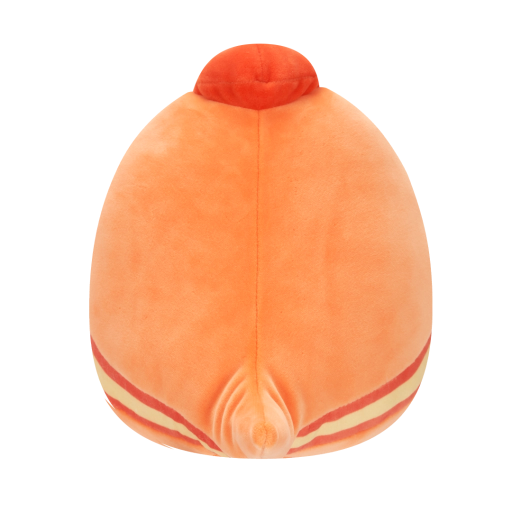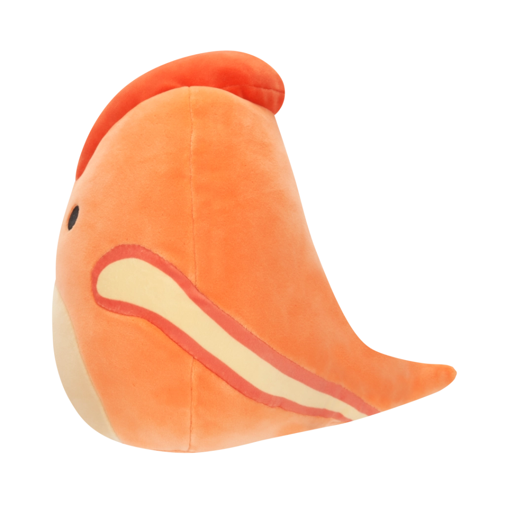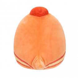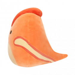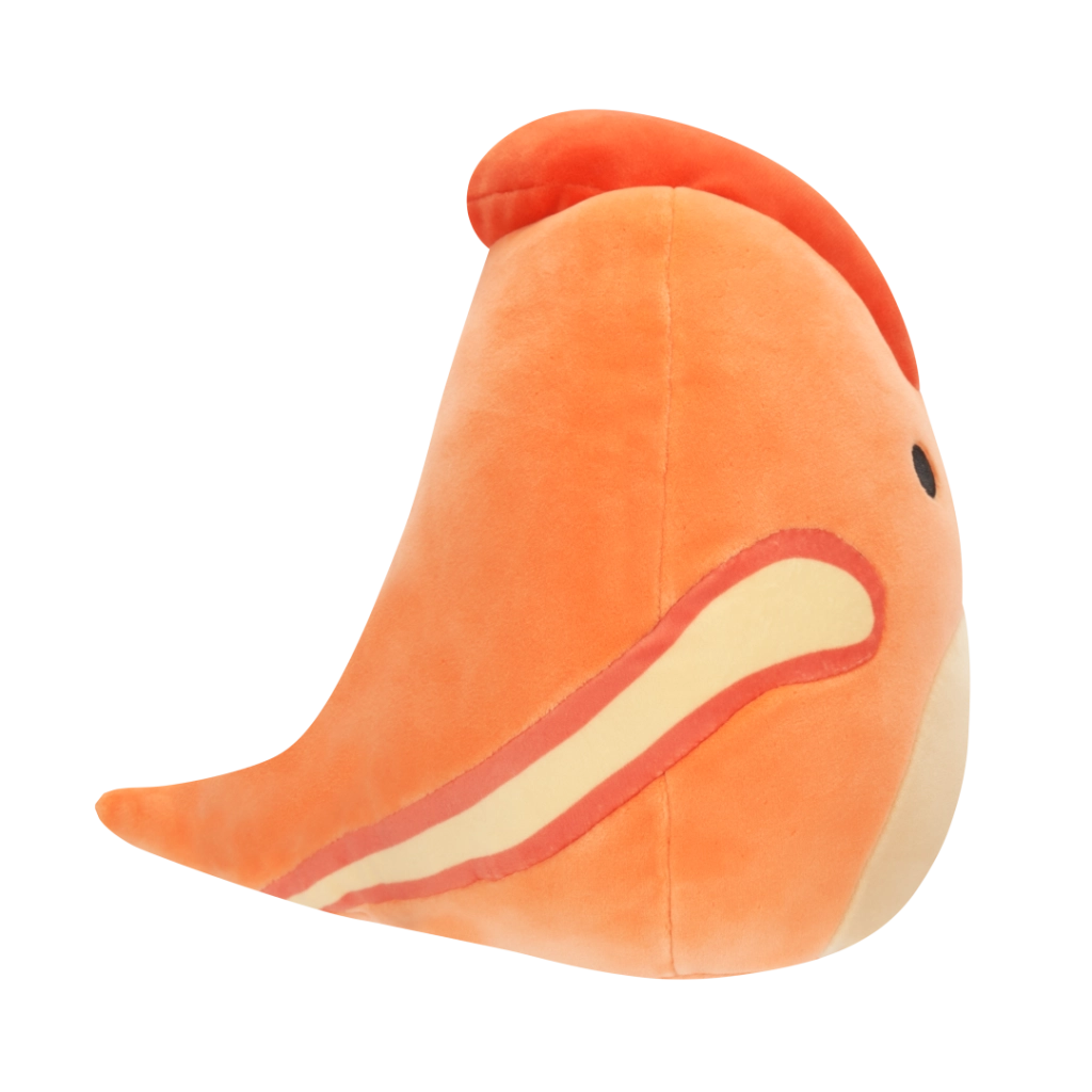 Veselý výraz, oranžové tělo a červený hřebínek potěší děti i sběratele Squishmallows.