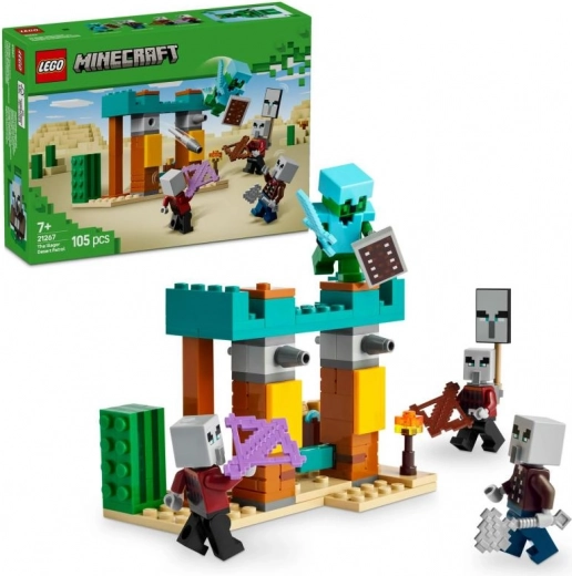 Vydejte se do vyprahlé pouště a chraňte stanoviště před trojicí ilagerů! Staňte se kaktusovým rytířem v diamantové zbroji a užijte si akci s realistickými doplňky ze hry Minecraft. Díky funkčním projektilům vystřelovaným prsty a zábavným prvkům je tento menší set skvělou volbou pro rychlou i dlouhou hru.
