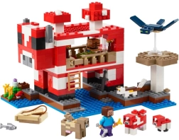 Vstupte do světa LEGO Minecraft a postavte velký dům ve tvaru houbo‑krávy se zahrádkou plnou pšenice a hub. Kromě Stevea se setkáte s červenou i hnědou houbo‑krávou, telátkem, tříbarevnou kočkou a útočícím phantomem. Otevřete interiér, objevte vybavení a vyrazte na výpravu za kořistí.