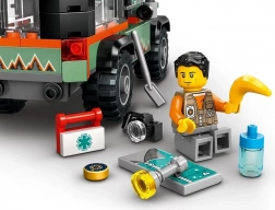 Tento detailně zpracovaný teréňák z řady LEGO City je stvořený pro objevování divočiny. Děti si užijí interaktivní funkce – pomocí pracujícího navijáku zdolají i strmá stoupání a po otočení výfuku zvednou kapotu pro „opravu motoru“. Střešní schránky ukrývají nářadí i výbavu, takže zábava nekončí ani mimo cestu.