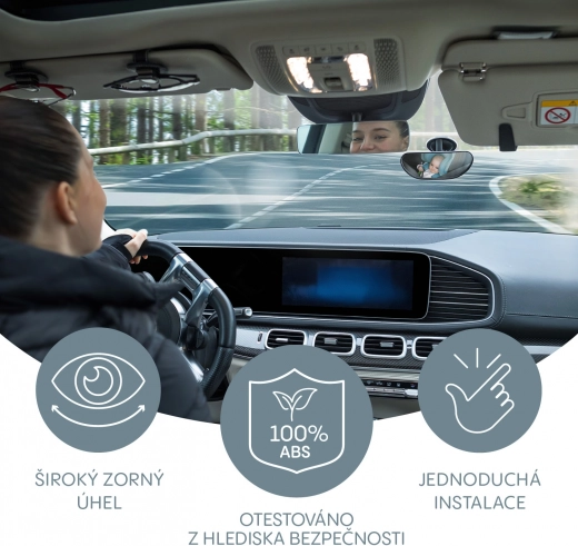 Toto kompaktní zpětné zrcátko je perfektní pomůckou pro rodiče, kteří chtějí mít kontrolu nad svým dítětem sedícím na zadních sedadlech. Díky svému vypouklému designu nabízí široký zorný úhel, což umožňuje snadnější sledování i během řízení. Otočnost o 360° vám umožní přizpůsobit polohu zrcátka přesně podle vašich potřeb.