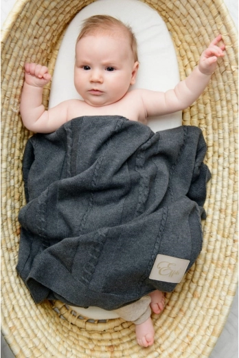 Deka je měkká na dotek, prodyšná a dobře drží tvar. Tmavě šedý odstín Dark Gray se snadno kombinuje s výbavičkou a je praktický pro každodenní používání doma i venku. Ideální jako dárek pro novorozence.