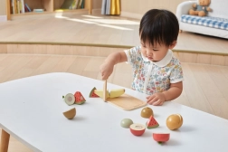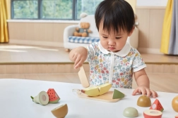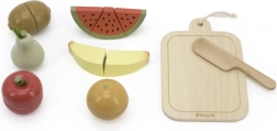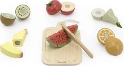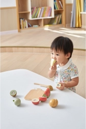 Díky tomuto setu dřevěného ovoce si mohou děti užít hodiny zábavy a zároveň se učit. Pomocí dřevěného nože mohou děti bezpečně krájet a kombinovat ovoce dle své fantazie.