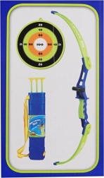 Tato kompletní sada pro malé lukostřelce obsahuje vše, co děti potřebují k bezpečnému tréninku míření: plastový luk o délce 70 cm, 3 šípy s přísavkami, pouzdro na šípy přes rameno a barevný terč. Díky přísavkám se šípy bezpečně přichytí na hladké povrchy a hra je tak vhodná do dětského pokoje i na zahradu.