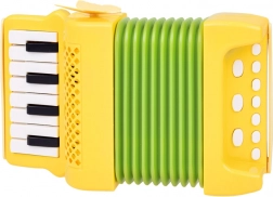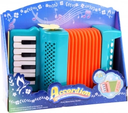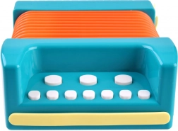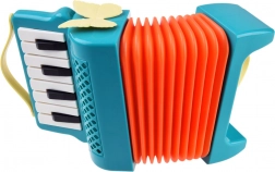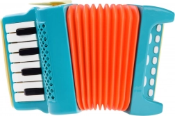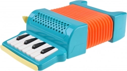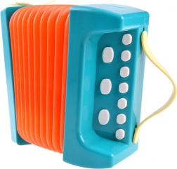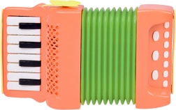 Tento barevný dětský akordeon je vyroben z odolného plastu v živých barvách a je navržen tak, aby zpříjemnil hru dětem. Jeho design obsahuje oranžový měch a klávesy, které umožňují vytváření vlastních melodií. Akordeon obsahuje funkční tlačítka, která dětem umožňují snadno ladit hlasitost a vybírat různé melodie.