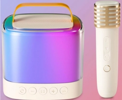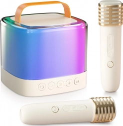 Přenosný bezdrátový mini reproduktor se dvěma mikrofony je ideální pro každého malého DJ! S mikrofonem, světelnými efekty disco, pohodlnou rukojetí a inovativním designem je to skvělá volba pro zábavu s přáteli, na grilování nebo domácí party.