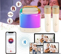 Užijte si zábavu kdekoliv díky přenosnému bezdrátovému mini reproduktoru se dvěma mikrofony. Tento skvělý set umožňuje zpívat ve dvojici nebo sólo díky dvěma mikrofonům. Díky kompaktním rozměrům ho snadno vezmete na hřiště, výlet nebo k přátelům a uspořádáte skvělou diskotéku. Možnost připojení přes bluetooth vám dovolí zpívat karaoke přímo z vašeho telefonu.