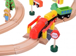 Tento úžasný dřevěný vláčkodráha set je ideální pro rozvoj dětské představivosti a jemné motoriky. Obsahuje: