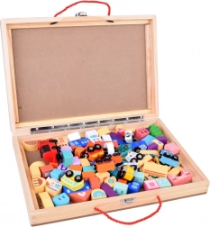 Obsahuje lehký dřevěný kufřík pro snadnou manipulaci a přenosnost, umožňuje ukládání všech stavebních bloků.
