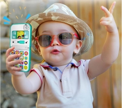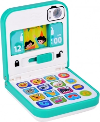Mezi hlavní funkce telefonu patří vesele hrající melodie, anglické číselné zvuky a dvě úrovně hlasitosti. Na zadní straně je zrcátko, které přitahuje dětskou zvědavost a podporuje rozvoj sebeuvědomění. Interaktivní design podporuje kognitivní a motorické dovednosti.