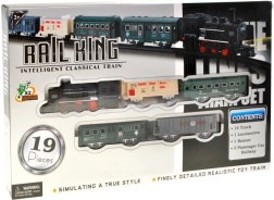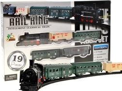Elektrický vláček je pečlivě navržen s důrazem na detail a je ideální pro začínající i pokročilé modeláře vláčků. Lokomotiva je poháněna klasickým parním strojem a set obsahuje čtyři vagóny – dva osobní a dva nákladní. Celková délka sestaveného vláčku je 65 cm. Bezpečnostní mechanismus zajišťuje napájení pomocí dvou AA baterií, které nejsou součástí balení.