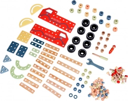 Stavebnice přináší dětem možnost naučit se funkce nástrojů a imitaci činností dospělých, jako je práce se dřevem. Manipulace s šrouby a maticemi pomáhá posilovat svaly rukou a zlepšuje koordinaci zraku a pohybu. Díky svoji univerzalitě je tento set ideální pro domácí i venkovní použití, a je skvělým způsobem, jak strávit čas s rodinou.