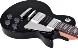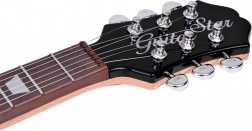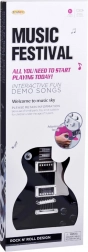Lesklé černé tělo, kovové struny a ovládací prvky napodobují skutečnou elektrickou kytaru a podporují opravdový hudební zážitek.