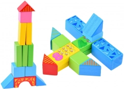 Kostky jsou vyrobeny z kvalitního dřeva a potaženy atraktivními barvami a grafikou, což zaručuje dlouhodobou odolnost a potěšení z hry.