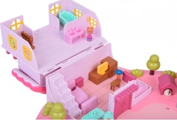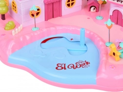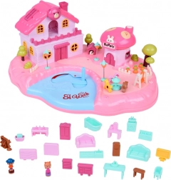 Objevte kouzelný dům v zahradě: otevřený domeček s obchodem ve tvaru muchomůrky, jezírkem s ovladačem a hřištěm zve děti k nekonečnému vyprávění příběhů. Skrytá magnetická indukce uvádí do pohybu figurky a detaily scény – stačí posouvat ovladač na jezírku a nechat je vyrazit na zahrádku, hřiště nebo do obchodu.