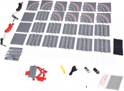 - 25 čtvercových podstav; díly pro START/META a parkoviště; 8 vlajek; 2 ovladače; 2 autíčka; USB kabel; obrazový návod; samolepky