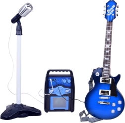 Tato stylová modrá kytara s funkčním mikrofonem a kompaktním zesilovačem motivuje děti k objevování světa hudby. Díky realistickému vzhledu a možnostem připojení si děti snadno zahrají, zazpívají a stanou se hvězdou rodinné show. Nastavitelný stojan mikrofonu se přizpůsobí růstu dítěte a společně s páskem na kytaru zajistí pohodlné hraní.