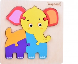Dřevěné puzzle slon – barevná vzdělávací vkládačka pro děti