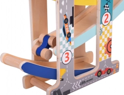 Víceúrovňová dráha s plynulým sjezdem autíček udrží děti dlouho v akci a zároveň rozvíjí trpělivost i soustředění.