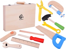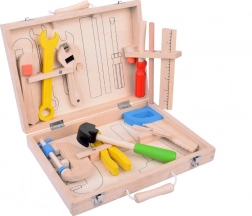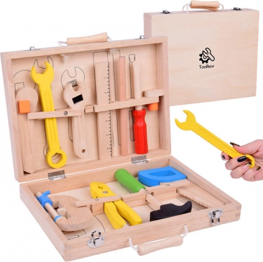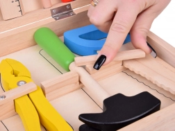 Tento dřevěný set nářadí je navržen tak, aby přesně padl do malých ruček a motivoval děti k aktivnímu objevování světa oprav a tvoření. Díky realistickým, ale bezpečným tvarům se děti hravou formou seznamují s tím, jak fungují kladivo, pila, šroubovák či klíče.