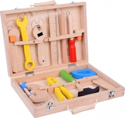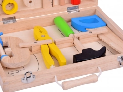 Kufřík je pevný, přehledně členěný a usnadňuje udržování pořádku. Dřevěné hračky jsou nadčasové, ekologické a odolné, což z nich dělá skvělou volbu pro každodenní hraní i jako dárek.