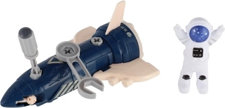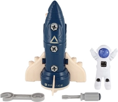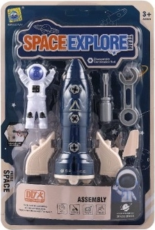 - Díly k sestavení (raketa / modul), figurka astronauta, plastový šroubovák, klíč