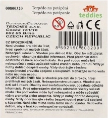 Produkt je dodáván na kartě o rozměrech 17 × 18 × 2 cm a skvěle se hodí do bazénu i na dovolenou. Jednoduché použití, bezpečný tvar a ideální velikost činí z torpéda perfektní doplněk pro aktivní vodní zábavu.