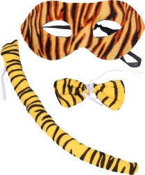 Proměňte se během chvíle v nezkrotnou šelmu! Tento karnevalní set obsahuje vše potřebné pro rychlou a zábavnou proměnu – škrabošku, ocas a motýlek. Ideální na karneval, dětské oslavy i tematické party.