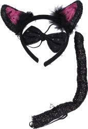 Sada "Černá kočka" je perfektní jak pro karnevaly, tak pro narozeninové oslavy nebo tematické párty. Díky svému jednoduchému designu je vhodná pro děti od 6 let. Každý prvek setu je navržen s ohledem na pohodlí a bezpečnost – flexibilní čelenka se přizpůsobí různým velikostem hlavy, zatímco motýlek a ocas zajišťují pohodlné nošení po delší dobu. Černá barva dodává kostýmu nadčasový a univerzální vzhled, který snadno sladíte s různými styly oblečení.
