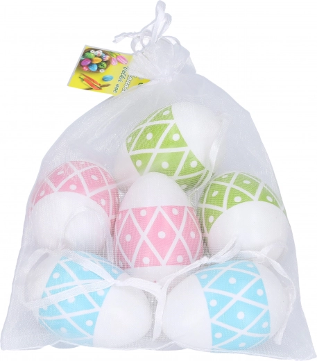Ozdobte svůj domov s tímto setem dekorativních plastových vajíček v různých barvách. Perfektně se hodí pro jarní a velikonoční dekorace. Sada obsahuje šest kusů vajíček, které jsou dodány v elegantním organza sáčku.