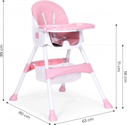 Židlička ECOTOYS usnadní společné stolování a podpoří samostatnost dítěte. Široký podnos slouží nejen ke krmení, ale i ke hře a tvoření. Odolné čalounění z eko kůže se snadno čistí a poskytuje dětem pohodlí, zatímco kovové nohy zajišťují pevnost a stabilitu.