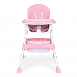 K praktickým přednostem patří 3stupňové nastavení podnosu, dvojvrstvá konstrukce s vyvýšenými okraji a držákem na hrnek, funkční košík na potřeby po ruce a 5bodový pás pro bezpečné připoutání. Protiskluzové koncovky chrání podlahu a brání klouzání, po použití lze židličku rychle složit a uložit.