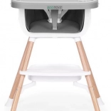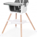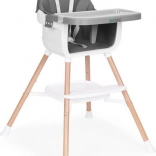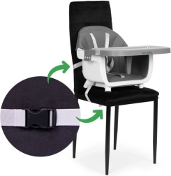 Varianta 2 v 1 umožňuje odejmout nohy a sedák bezpečně připnout popruhy na běžnou židli – ideální na cesty i ke stolu v jídelně.