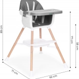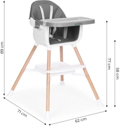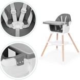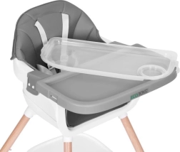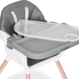 Tato moderní židlička usnadní společné stolování – dítě může sedět u stolu, pozorovat, napodobovat a osvojovat si správné návyky. Široký tác slouží nejen k jídlu, ale i ke hře, kreslení či stavění kostek, takže se rychle stane oblíbeným kusem dětského nábytku.