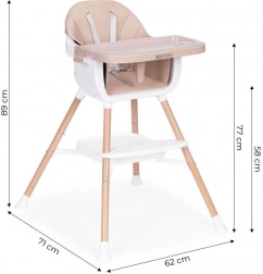 Vítejte u stolu! Tato židlička usnadní společné stolování od prvních příkrmů. Široký tácek poskytne prostor na jídlo, hru i tvoření, zatímco měkké, odolné čalounění z snadno omyvatelné eco kůže zajistí pohodlí i snadnou údržbu. Moderní vzhled se hodí do každého interiéru.