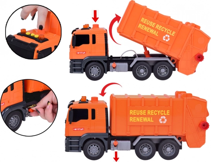 Přidejte realistický zvuk motoru, houkačky a nakládání odpadků, které zapojují děti do hry. Zvuk je doprovázen blikajícími světly, což přidává hře na atraktivitě.