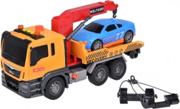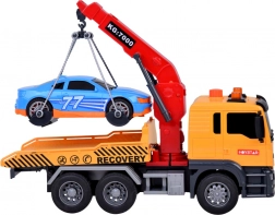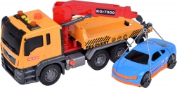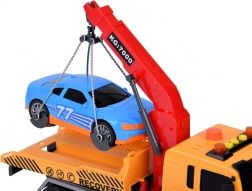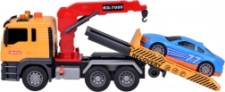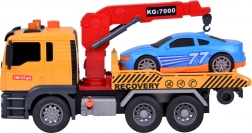 Součástí setu je také sportovní modré auto, které dokonale padne na odtahovku. Celá hračka je vyvedena v realistických barvách - žlutá, šedá, červená a modrá.
