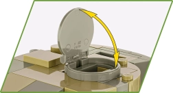 - Otočná věž, polohovatelná hlaveň, otevírací poklopy, funkční pásy