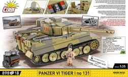 Postavte si legendární tank Panzer VI Tiger I č. 131 ve velmi oblíbeném měřítku 1:35. Tento detailní model od COBI obsahuje 898 dílků, má otáčivou věž, polohovatelnou hlaveň a funkční pásy. Nechybí minimodel motoru Maybach, otevírací poklopy, figurka velitele v tropické uniformě a sběratelská tabulka s logem The Tank Museum.