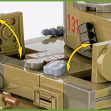 Otočná věž, polohovatelná hlaveň, otvírací poklopy a realistické pásy z mnoha článků umocní zážitek ze stavby i hraní.