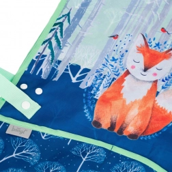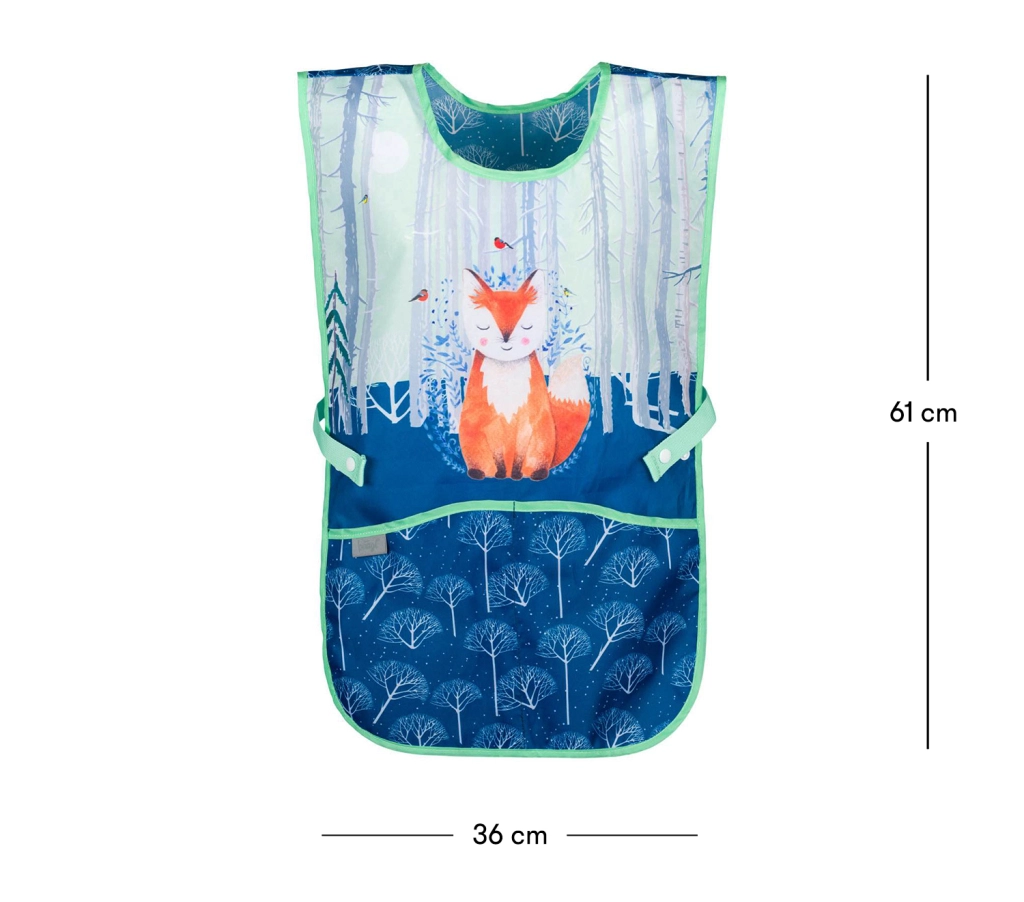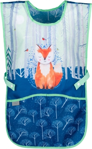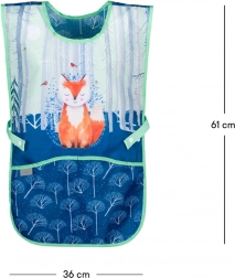 Roztomilá dětská zástěra s motivem lišky v lese chrání oblečení při malování, vaření i na kroužcích. Má nastavitelné popruhy, velké kapsy a je z omyvatelného materiálu pro snadnou údržbu.