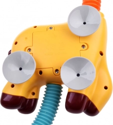 Montáž je otázkou okamžiku – přísavky pevně drží na hladkých površích vany či obkladů. Po ponoření spodní částí s čerpadlem do vody a stisku tlačítka-kvítku na bříšku žirafy začne z tlamičky vytékat jemný sprchový proud, ideální pro šetrné oplachování i hravou koupel.