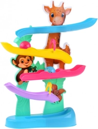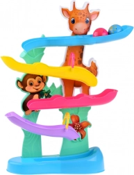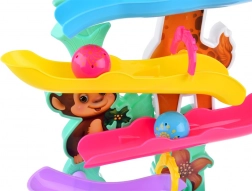 Tato barevná kuličková dráha inspirovaná džunglí přináší dětem radost z pozorování pohybu a objevování. Čtyři rampy v jasných barvách vedou kuličky dolů, kde je čekají zvuky zvířat a bubínkové efekty, které ještě více motivují ke hře.
