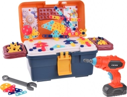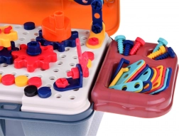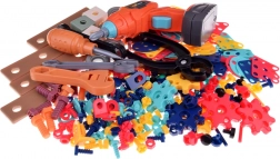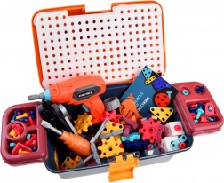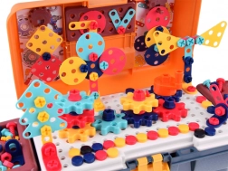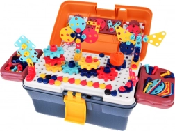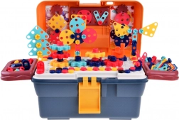 Barevná přenosná dílna pro malé kutily přináší 298 dílů pro šroubování, stavění a tvoření. Kufřík s pracovní deskou s otvory a organizéry obsahuje dětskou vrtačku/šroubovák, šrouby, matice, ozubená kola a stavební dílky pro tvorbu 2D i 3D modelů. Rozvíjí jemnou motoriku, logické myšlení a kreativitu dětí od 3 let.